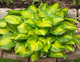 Листья с темно-зеленой серединой и широкой, кремово-белой полосой по краю. Цветет бледно-розовыми цветками с мая по июнь. Размер взрослого растения до 30 см. Обладает высокой зимостойкостью. Предпочитает умеренно влажные почвы. Уход – прополка — основа хорошего роста этого растения. В поливе и удобрениях она не нуждается. Рыхлить посадки не рекомендуется, так как корневища расположены близко к поверхности. Можно использовать в бордюрах, так как она не разрастается, держит форму весь сезон.
